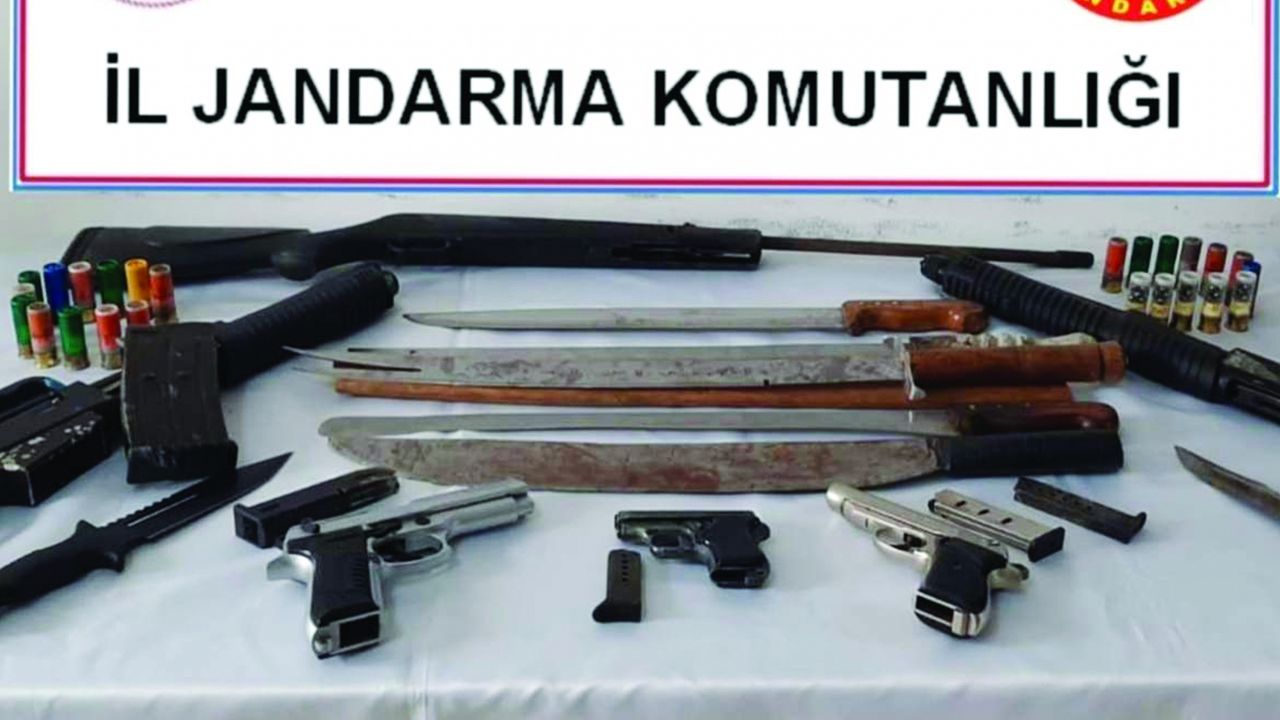 Valilik açıklamasında, İl Jandarma Komutanlığınca yürütülen faaliyetler neticesinde 4 tabanca, 5 tabanca şarjörü, 3 av tüfeği, 24 av tüfeği fişeği, 11 tabanca fişeği, 7 bıçak, bir kılıç, bir keski ve 2 bin 450 paket bandrolsüz kaçak sigara ele geçirildiği belirtildi.