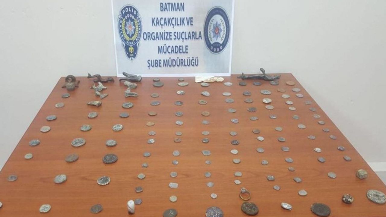 Batman'da durdurulan bir araçta yapılan aramada 136 adet kaçak tarihi eser ele geçirildi. Konuyla ilgili Batman İl Emniyet Müdürlüğünden yapılan açıklamada, 'Kaçakçılık ve Organize Suçlarla Mücadele Şube Müdürlüğü görevlilerimizce durumundan şüphelenilen bir aracın durdurularak yapılan aramasında 136 adet tarihi eser olduğu değerlendirilen malzeme ele geçirilmiştir.' denildi.