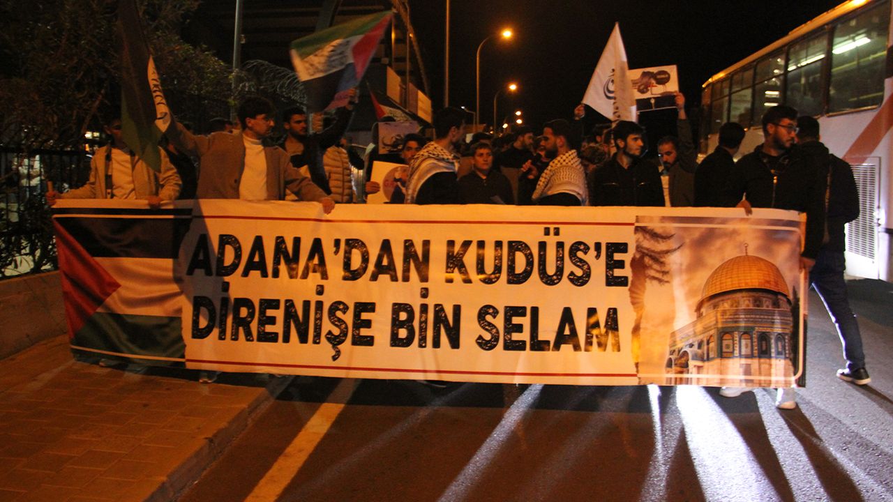 Çukurova Üniversitesi öğrencileri, Filistin’e destek amacıyla gece yarısı bir araya gelerek, "Tekbir Cuması Yürüyüşü" etkinliği düzenledi.