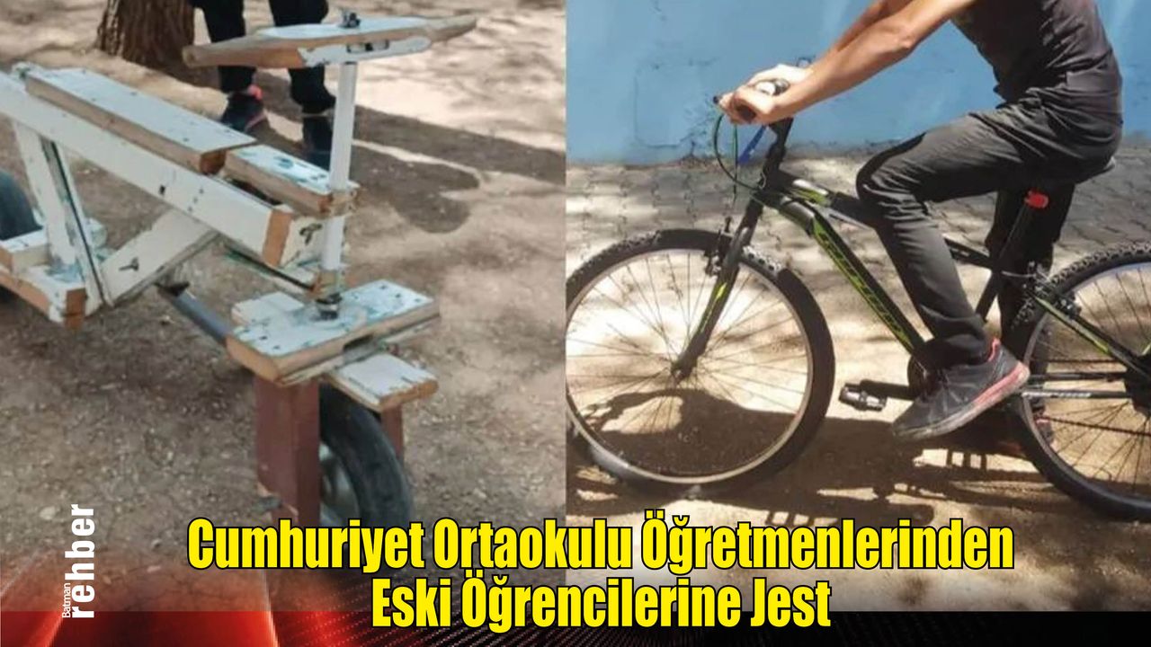 Öğrencilerinin azmi ve yaratıcılığı karşısında duyarsız kalmayan Cumhuriyet Ortaokulu öğretmenleri, aralarında topladıkları parayla eski öğrencilerine yepyeni bir bisiklet hediye etme kararı aldı. Yapılan bu nazik jestle öğrencilerine sahip çıkan öğretmenler, onun emeğini ve bağlılığını ödüllendirmiş oldu.