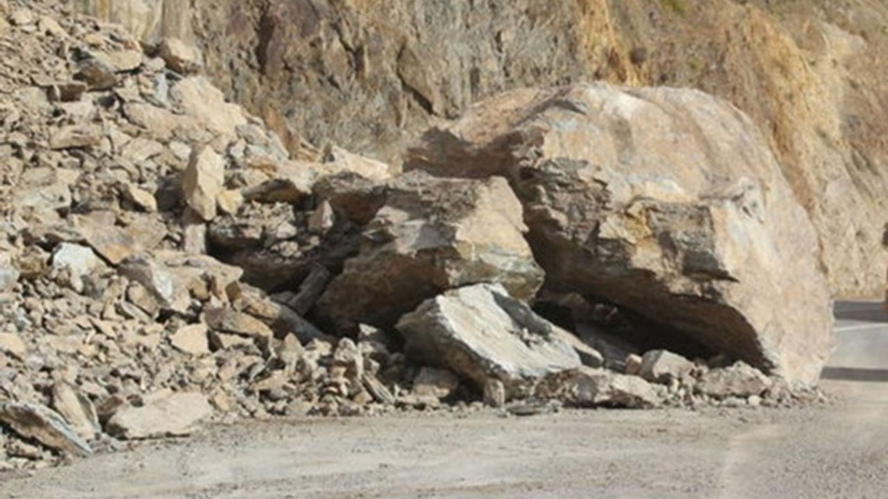 Heyelan nedeniyle yol trafiğe kapandı. Haber verilmesi üzerine karayolları ekipleri çalışma başlattı. Yola düşen dev kaya parçaları temizlenirken, yol yönlü olarak hizmet veriyor.