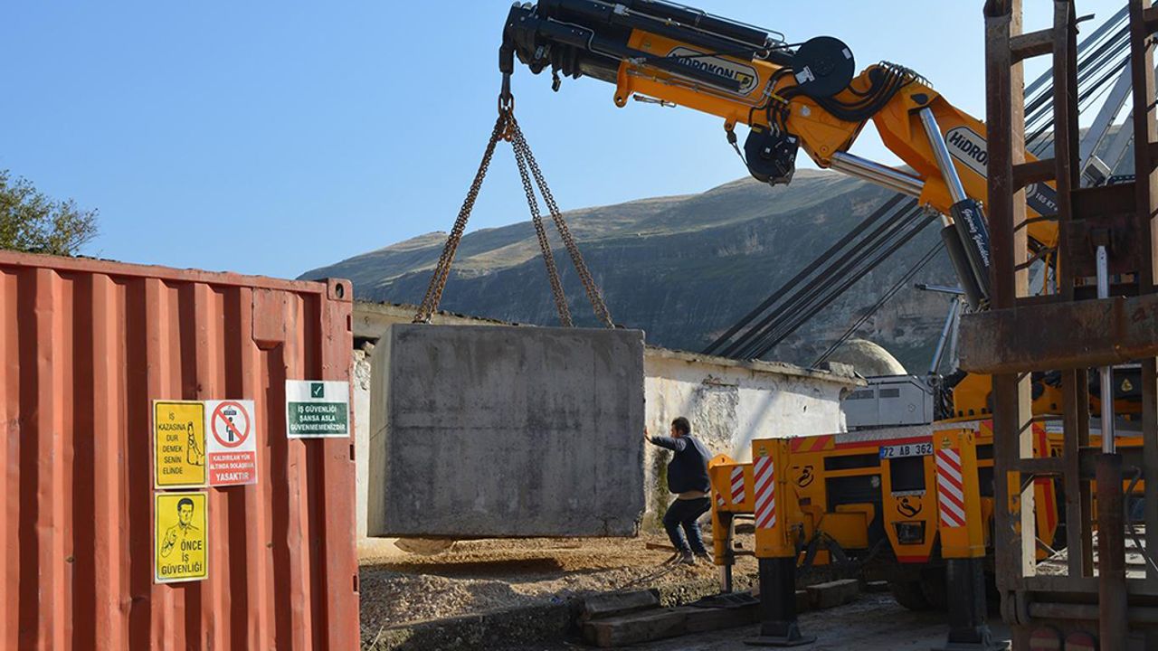 duvarlarının taşınması sırasında Hasankeyf ilçe merkezinden geçen uluslararası