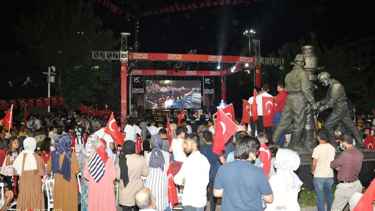 Atatürk Parkı’nda bir araya gelen halk, sık sık tekbir getirip darbe