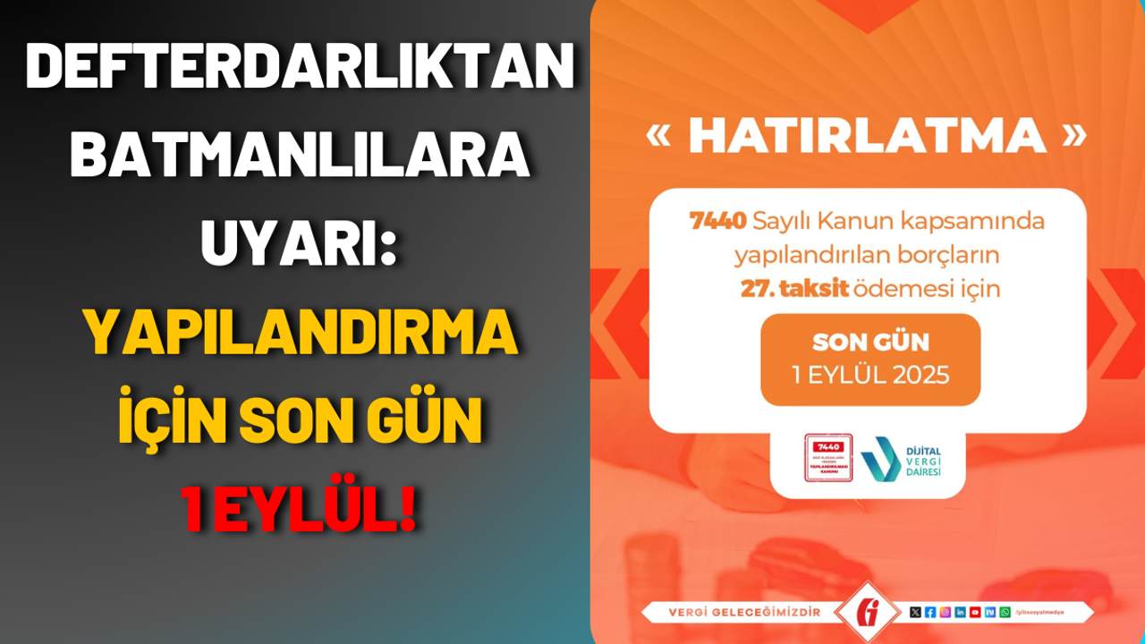 Yapılan duyuruda, yapılandırma taksitlerinin düzenli ödenmesinin önemi vurgulanarak, 27. taksit ödemesinin son gününün 1 Eylül 2025 Pazartesi olduğu belirtildi.
