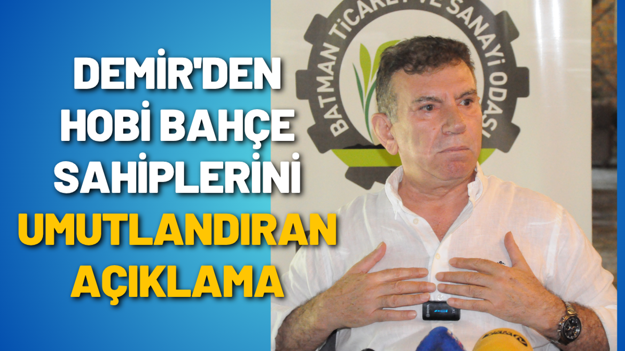 Batman'da son dönemde gündemi meşgul eden hobi bahçelerindeki kaçak yapıların yıkım kararlarına ilişkin önemli bir gelişme yaşandı. Hobi bahçesi sahiplerinin temsilcileri adına konuşan Batman Ticaret ve Sanayi Odası (BATSO) Başkanı Abdulkadir Demir, bir basın toplantısı düzenleyerek sürecin takipçisi olduklarını ve çözüm arayışında olduklarını belirtti. Demir, devlet yetkilileriyle görüşmelerin devam ettiğini ve sürece zarar vermemek adına şimdilik detaylı bir açıklama yapmayacağını duyurdu.
