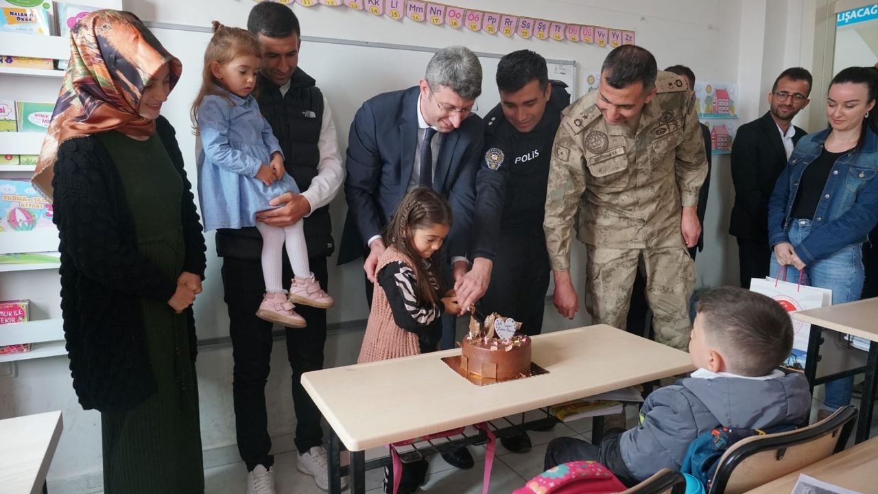 Atatürk Ortaokulu 6. sınıf öğrencisi Nurullah Tercan'a Kaymakam Mahmut Şener doğum
