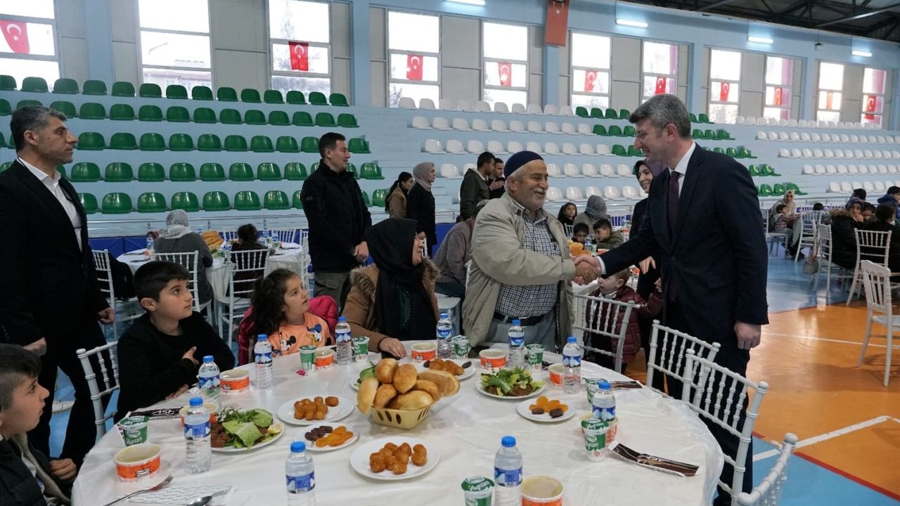 edilen iftar yemeğinde depremzede vatandaşlar, yetim ve öksüz çocuklarla bir