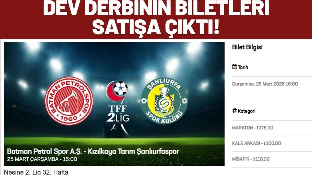 Batman Stadyumu'nda 25 Mart Çarşamba günü saat 16.00'da oynanacak olan 32. hafta mücadelesi için geri sayım sürerken, taraftarların merakla beklediği bilet detayları da belli oldu. Lider Batman Petrolspor'un kendi saha ve seyircisi önünde Kızılkaya Tarım Şanlıurfaspor'u ağırlayacağı şampiyonluk maçının biletleri, Passo sistemi üzerinden online olarak satışa açıldı.