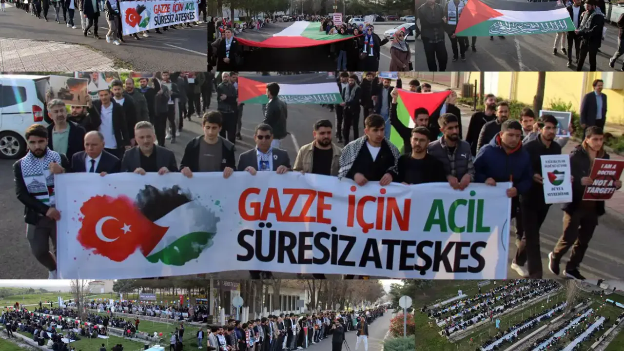 Dicle Üniversitesinde bir araya gelen öğrenci kulüpleri, İzzettin El Kassam Tugaylarının "meydanları boş bırakmayın" çağrısına sessiz kalmayarak üniversite yerleşkesinde yürüyüş yaptı. Düzenlediği basın açıklaması sonrası aralarında üniversite yöneticilerinin de olduğu yüzlerce katılımcıya iftar yemeği verdi.