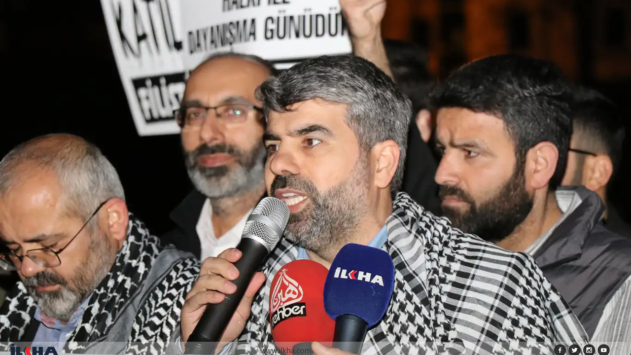 Bugün Dünya Kudüs Günü, bugün günlerden Kudüs diyerek basın açıklamasını okuyan Karakaş, "Ümmet evlatlarının elleri Kudüs ve Gazze için duada… Yükselen haykırışlar Kudüs ve Gazze için! Gün; Kudüs ve Gazze için fedakârlık yapma, Kudüs ve Gazze davasını omuzlama, Kudüs ve Gazze için feda olma günüdür! Ümmetin özgürlük ve izzeti Kudüs’ün ve Mescid-i Aksa’nın özgürlük ve izzetine bağlıdır çünkü… Kudüs, Peygamberimiz Hazreti Muhammed (Aleyhisselatu Ve's-selam)’in şanı yüce Allah’ın emriyle 'sırr-ı kâinat ve sırr-ı hakikatin' bazı ayetlerinin gösterilmek üzere 'bir gece Mescid-i Harâm’dan çevresi mübarek kılınan Mescid-i Aksa’ya' götürülmesiyle İsra olayının ve miraca çıkışın yaşandığı muhterem bir diyar-ı İslam’dır. Kudüs, yeryüzü müminlerinin imanın şartlarından olan nice peygamberin Allah’a davet çağrılarının yankılandığı şehirdir. Kudüs; Müslümanım diyenler için ırksal, mezhepsel, grupsal tüm aidiyetlerin üzerinde insani ve kesinlikle imani bir aidiyet taşır. Kudüs, Arap olan Hazreti Ömer’in fethi, Kürd olan Selahaddin-i Eyyûbi’nin rotası ve hürriyete kavuşturması, Türk olan Abdülhamid’in siyonistlere karşı yürek yangını ve sancısıdır." dedi.