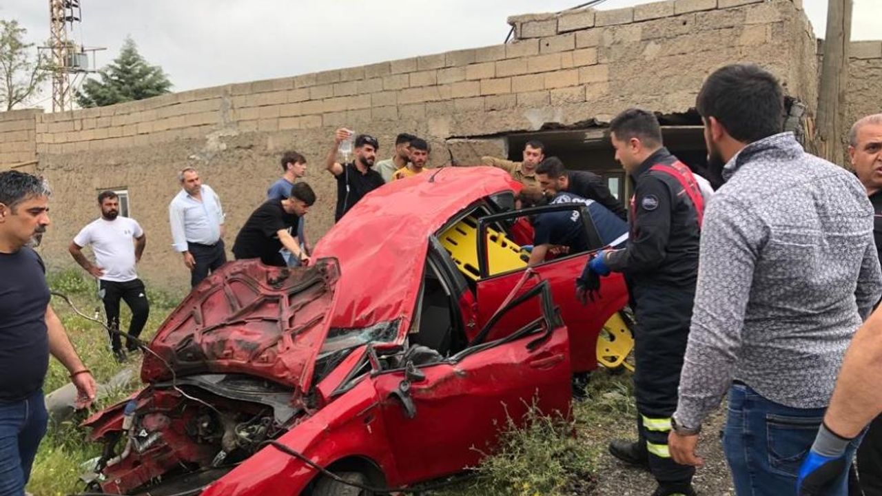 Kazada otomobil şoförü ve şantiye bekçisi ağır yaralandı.