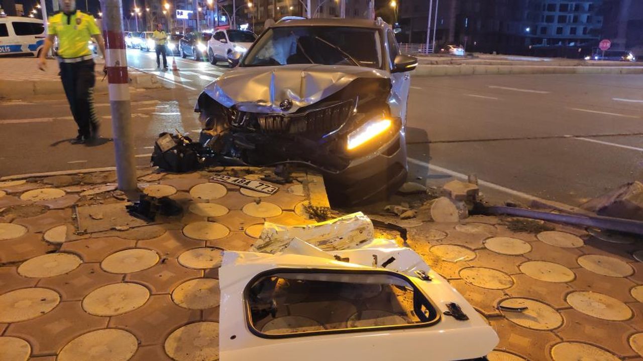 plakalı otomobile çarptı. Çarpışmanın etkisiyle otomobil kaldırıma çarparken