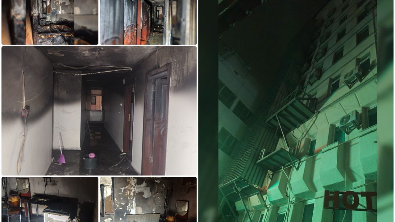 Otelde hasar oluşurken yangının çıkış nedeninin belirlenmesi için inceleme başlatıldı. (İLKHA)