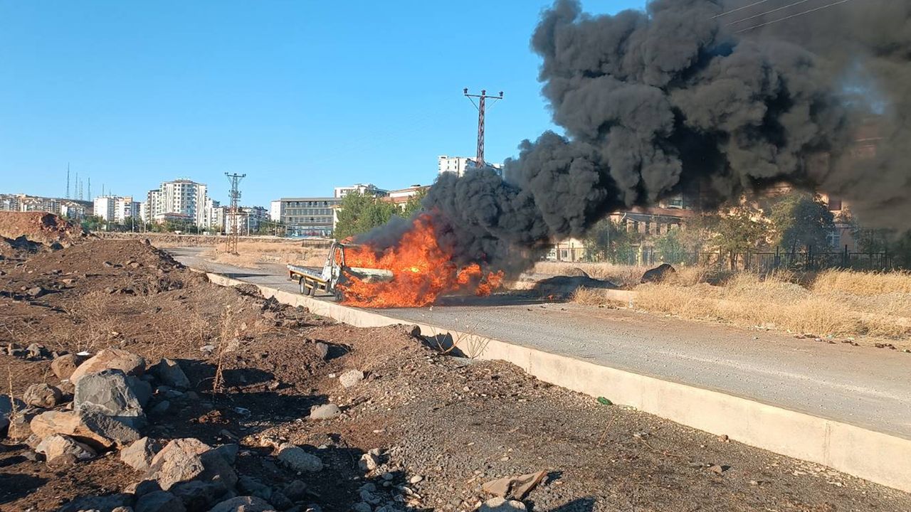 Kayapınar ilçesi 500 Kavşağı’nda park halindeki 21 BN 437 plakalı çekicide çıkan yangın paniğe neden oldu.