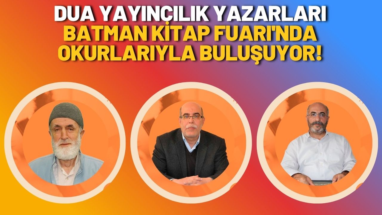 24 Ekim – 2 Kasım tarihleri arasından düzenlenecek olan 8. Batman Kitap Fuarı’nda Dua Yayınları da yer alacak. Dua Yayınları yazarlarından Sadullah Aydın, Mehmet Göktaş ve Mehmet Baran Dua Yayınları standında okuyucularla buluşup sohbet edecek ve kitaplarını imzalayacak.