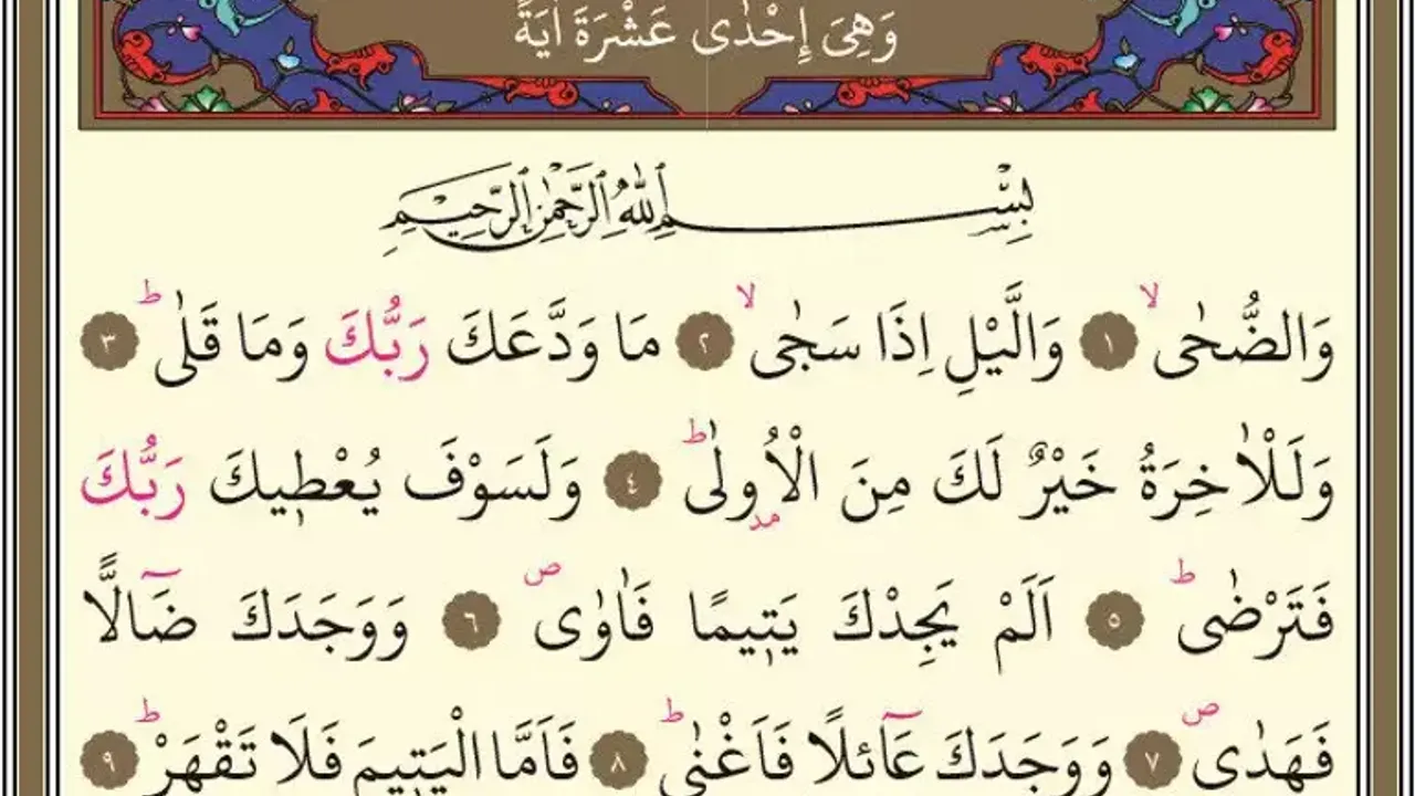 - "Ve'l-Duha (Kuşluk vaktine yemin olsun ki)"