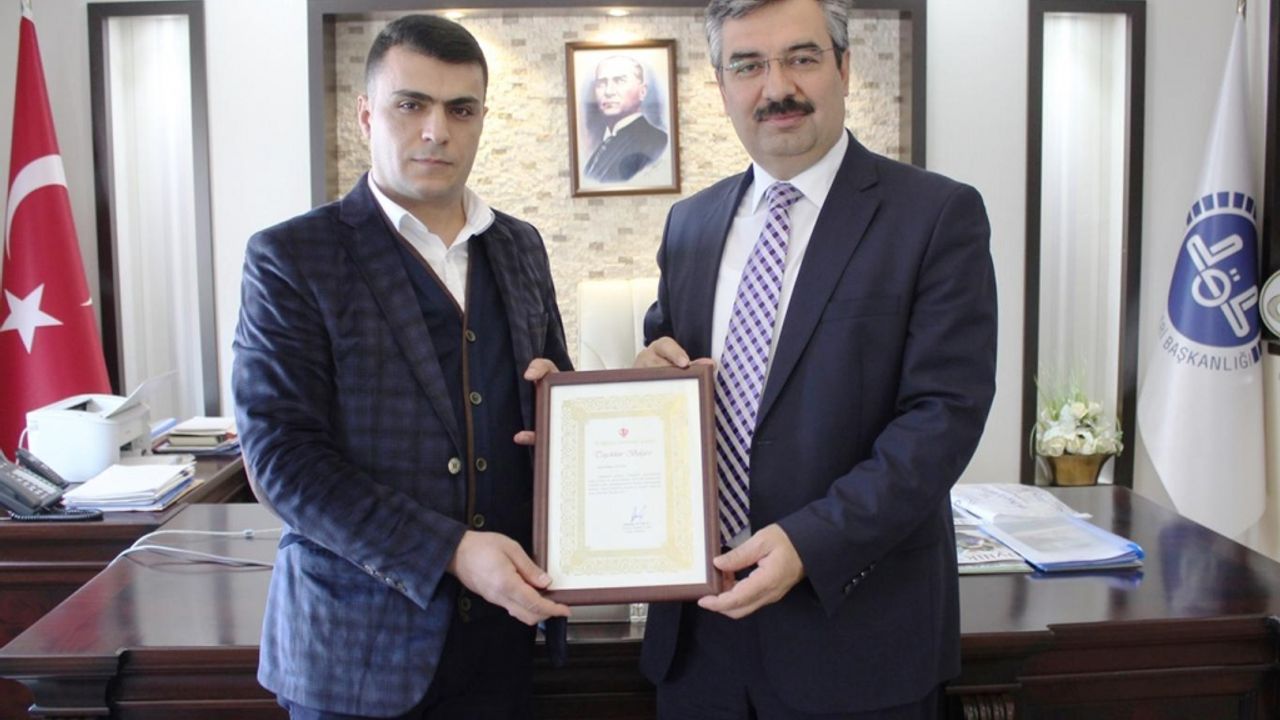 Hayırsever vatandaşa, Türkiye Diyanet Vakfı Genel Müdürü Mustafa Tutkun'un imzaladığı teşekkür belgesini İl Müftüsü Turgut Erhan verdi.
