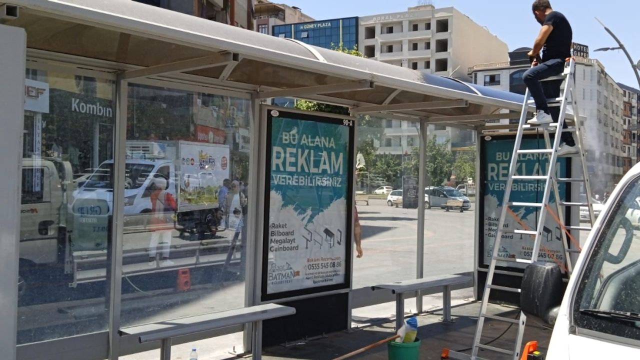 otobüs durağı yıkanarak temizlenecek. Otobüs duraklarının iç ve dış mekânları