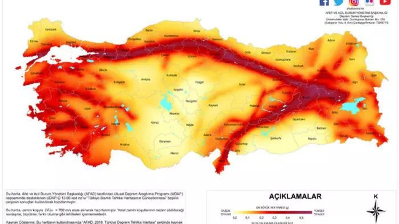 sorgulayabilirsiniz. Bu harita, Türkiye'deki deprem tehlikesini gösteren