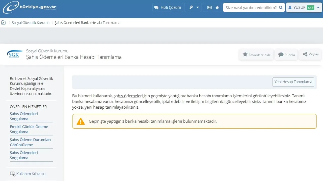 - Arama Kutusunu Kullanın: Giriş yaptıktan sonra ana sayfadaki arama çubuğuna "Şahıs Ödemeleri Banka Hesabı Tanımlama" yazın ve arama sonucunda çıkan Sosyal Güvenlik Kurumu'na ait hizmete tıklayın.