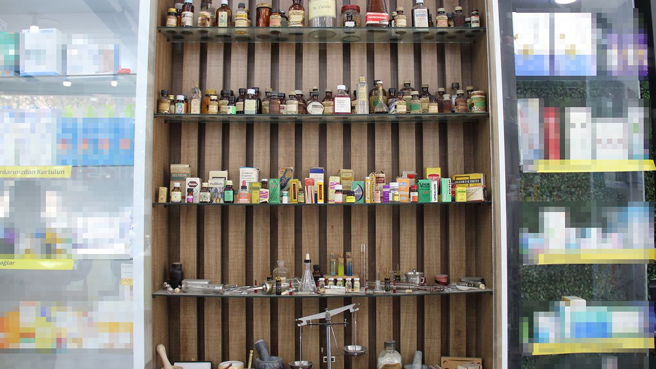 Eski dönemlerde kullanılan ilaç şişeleri, teraziler, iğneler, ateş ölçerler ve ilaç yapımında kullanılan ekipmanların sergilendiği bu köşe, ziyaretçilerin yoğun ilgisini çekiyor.