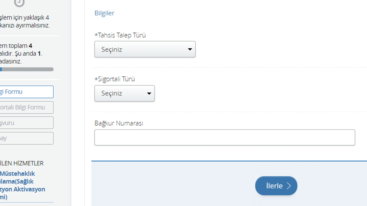 Açılan formda ilk olarak "Tahsis Talep Türü" seçilir. Emeklilik için "Yaşlılık Aylığı", vefat eden yakını için "Ölüm Aylığı" gibi ilgili seçenek işaretlenir. Ardından sigortalılık türü (4A SSK / 4B Bağ-Kur) seçilerek başvuruya devam edilir. Sistem, kimlik ve adres bilgilerini otomatik olarak MERNİS'ten çeker. Başvuru sahibinin, maaşını almak istediği banka ve şubeyi seçmesi, iletişim bilgilerini (özellikle cep telefonu) doğru girmesi kritik öneme sahiptir. Tüm bilgiler kontrol edildikten sonra "Başvur" butonuna basıldığında talep resmi olarak SGK'ya iletilmiş olur. Bu andan itibaren başvuru, "tahsis talep tarihi" ile kayda alınır.