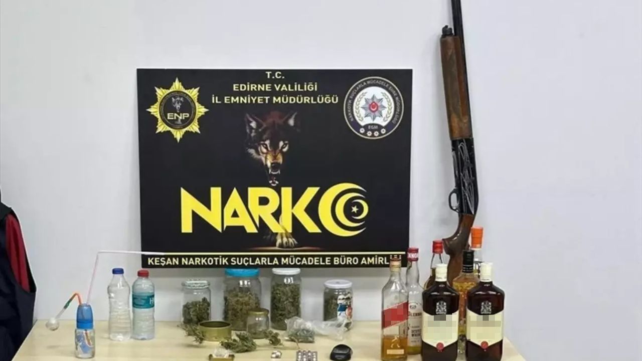 Aramada 1 kilo 972 gram esrar, 18 sentetik ecza, 6 ecstasy uyuşturucu hap, hassas terazi, av tüfeği ele geçirildi.