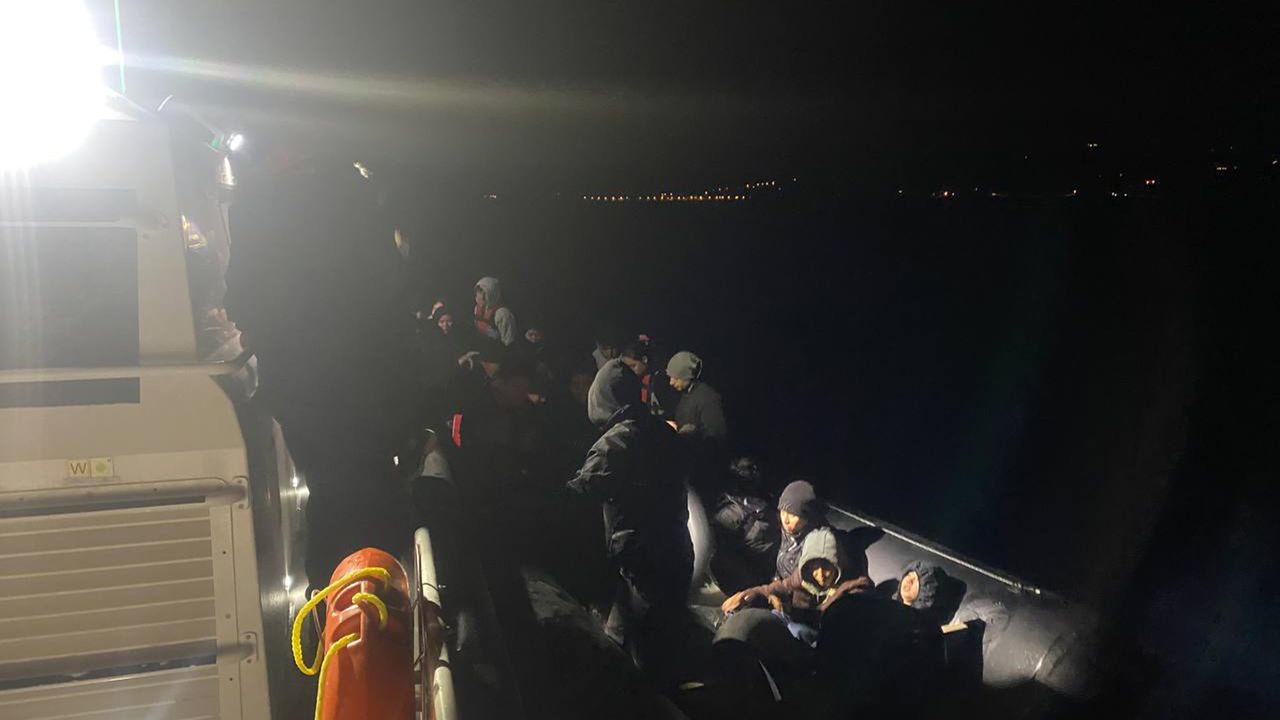 Sahil Güvenlik Kuzey Ege Grup Komutanlığı ekipleri, Ayvacık açıklarında lastik bot içinde 5'i çocuk toplam 11 kaçak göçmeni yakaladı.