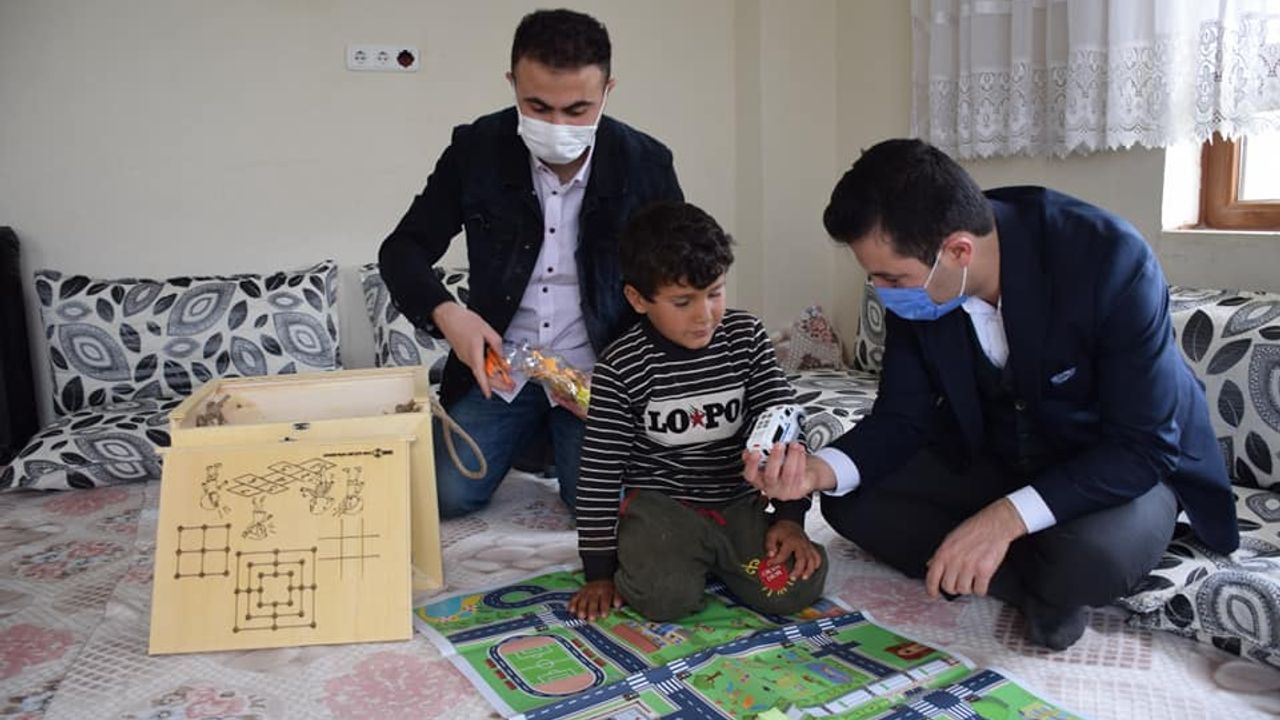 İlçe Koordinatörleriyle birlikte öğrenciler evlerinde ziyaret edilip materyal