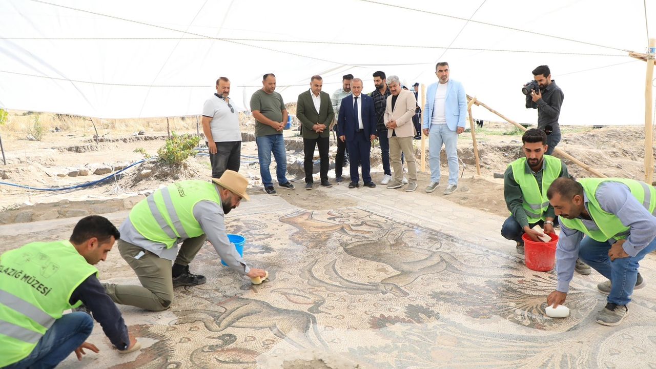 Elazığ Valisi Numan Hatipoğlu, merkeze bağlı Salkaya köyünde bulunan tarihi mozaiği yerinde inceledi.