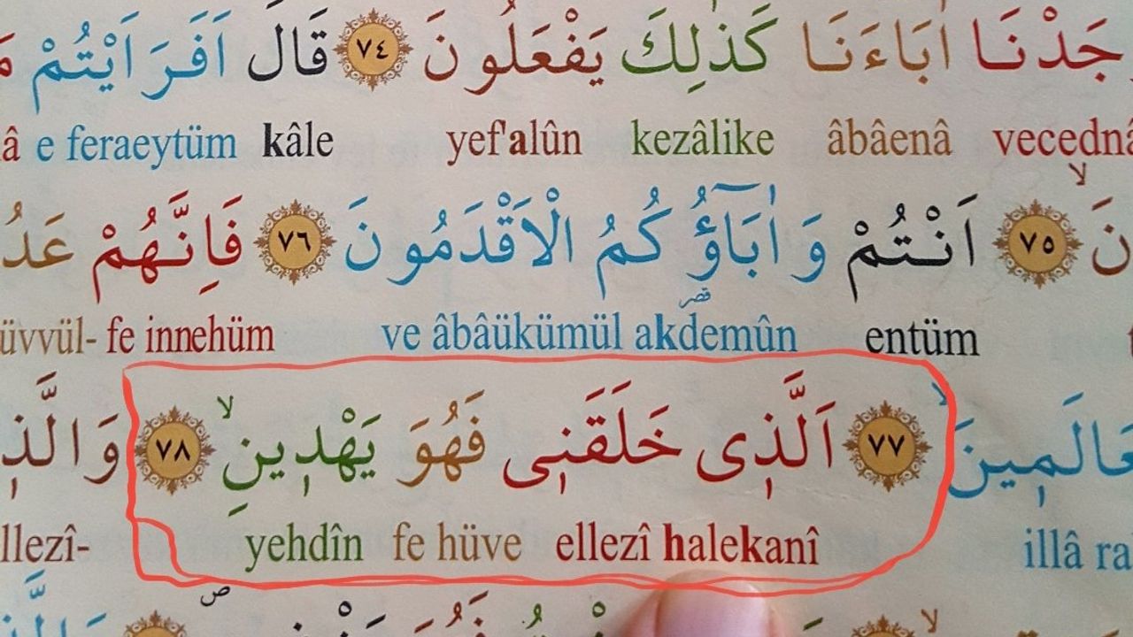 - 80. Ayet: "Hastalandığım zaman bana şifa veren O'dur."