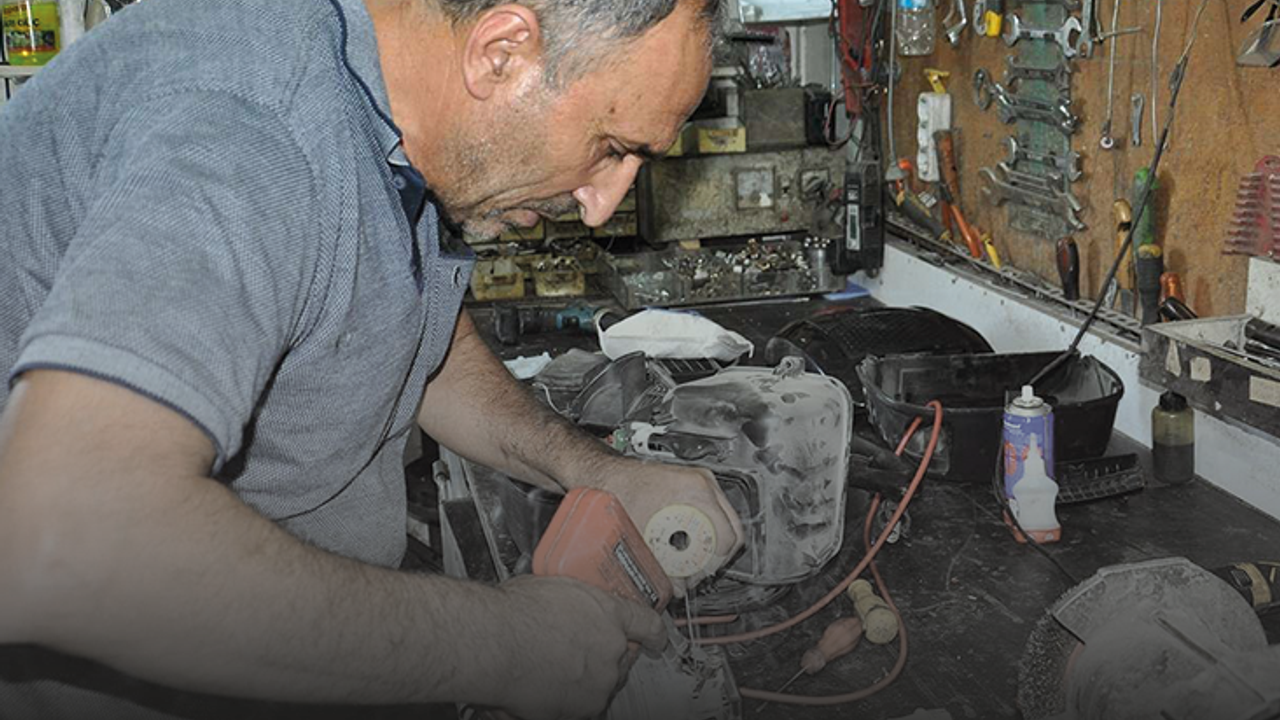 aletlerinin tamirini yaparak ailesinin geçimini sağlayan dört çocuk babası