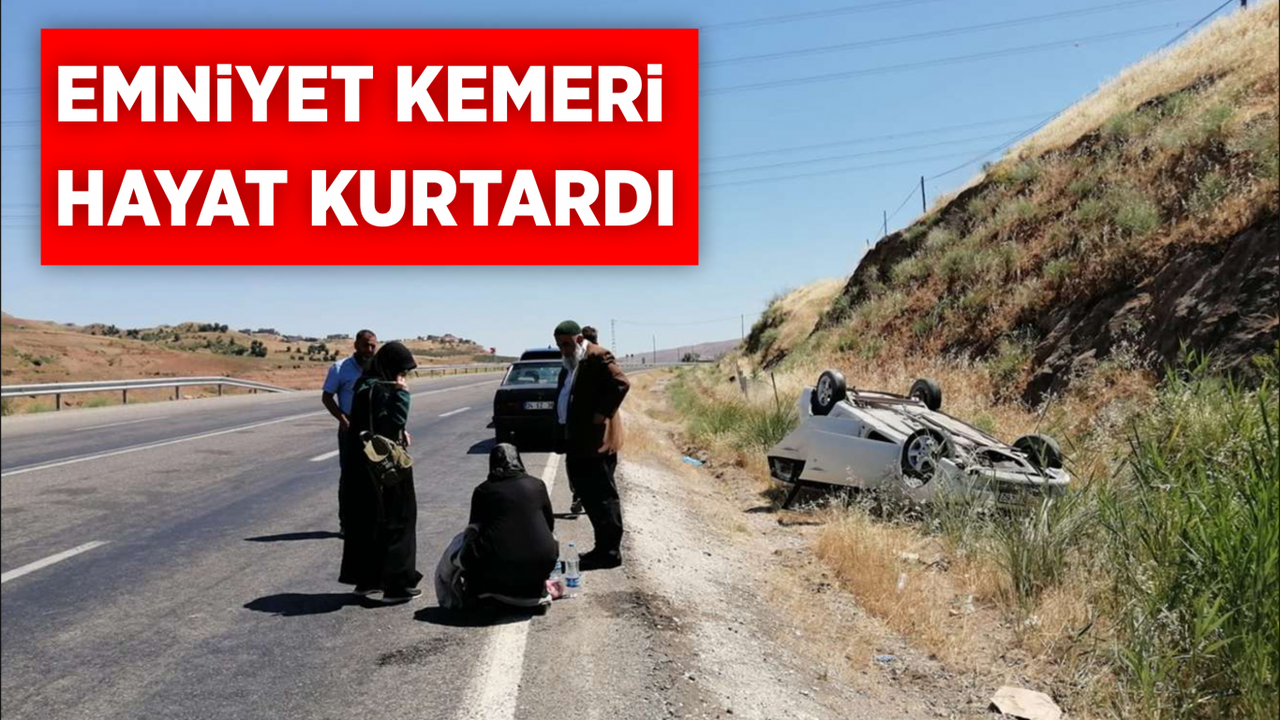 Seyir halindeki otomobil takla attı. Kazada emniyet kemerini