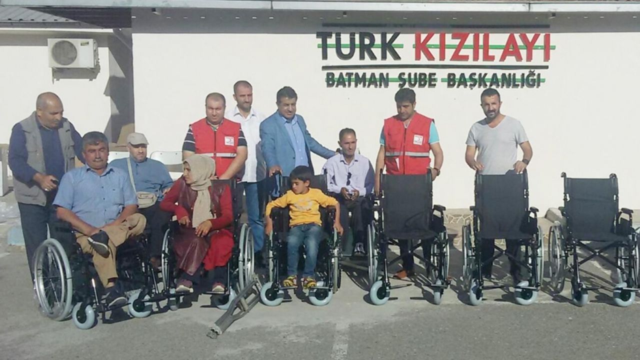 Kızılay Genel Merkez Yönetim Kurulu Üyesi Sabahattin Tezdiğ, daha önceden Batman Şube Başkanlığına yapılan müracaatlar dolayısıyla tekerlekli sandalye alması uygun görülen 6 engelli vatandaşa tekerlekli sandalyelerini teslim etti.