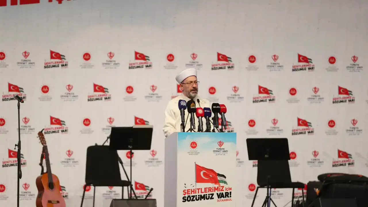 Kudüs'ün Müslümanlar için bir iman ve izzet meselesi olduğunu kaydeden Erbaş, "Bu mesele artık sadece Müslümanların ya da sadece Filistinlilerin meselesi olmaktan çıkmıştır. Bugün Gazze'de, Filistin'de yaşananlar, bu meseleyi tüm insanlığın hukuk, ahlak ve vicdan meselesine dönüştürmüştür. Siyonist İsrail'in terör faaliyetlerine, katliamlarına ve soykırım suçuna karşı Gazze'yi savunmak, insan olmanın bir gereğidir. İsrail'in baskı, şiddet ve vahşetine karşı Özgür Filistin'i savunmak, evrensel insani değerlerin bir gereğidir." diye konuştu.