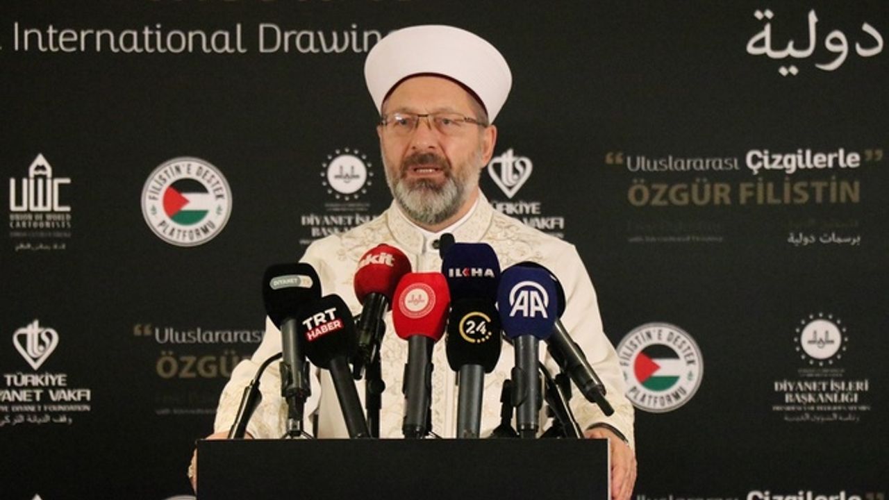 Başkan Erbaş, İslam ülkelerinin bir araya gelerek İsrail’e karşı ortak bir tavırla yeterince tepki veremediğini belirterek, "İslam'a karşı her tür eyleme hoşgörü ve özgürlük gözüyle bakan Batılı ülkeler ise yıllardır sistemli bir şekilde soykırıma maruz bırakılan Filistinlilerin asil direnişlerini, haklı özgürlük davalarını terörizm olarak gördü. Ancak, İsrail’in Filistin halkına ait toprakları sistemli bir şekilde işgal etmesi ve Gazze’de uyguladığı soykırım, tarihe kara bir leke ve en büyük terör faaliyeti olarak geçti." diye konuştu.
