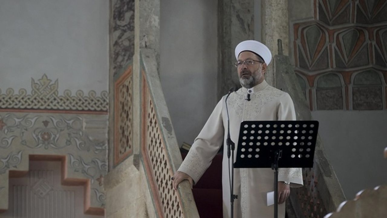 Anadolu'dan Bosna Hersek'e selam getirdiğini ifade eden Erbaş, "Yüce Allah'ın insanlığa gönderdiği İslam'ın temel gayesi tevhit ve vahdettir, birlik ve beraberliktir. Bütün kulların bir ve tek olan Allah'a iman etmesi, son Peygamber Resul-i Ekrem'e tabi olması, hayat rehberimiz Kur'an-ı Kerim'e gönülden bağlanmasıdır. Rabb'imiz, biz müminleri tek bir ümmet kılmıştır. Bizler, aynı imanla Rabb'imize kul olduk. Aynı kıbleye yönelip istikametimizi bulduk. Aynı mabedin kubbesinin altında Rabb'imizin divanına durduk. Aynı safta omuz omuza kıyam ettik elhamdülillah." dedi.