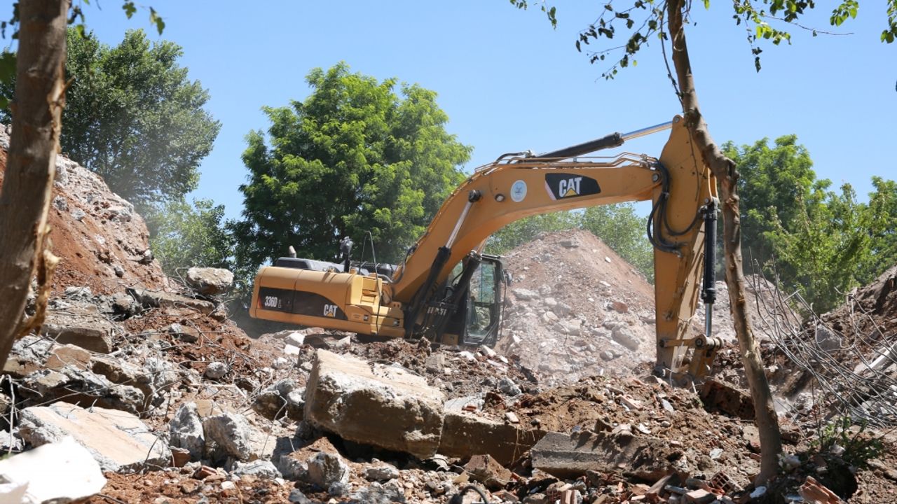 Yaklaşık 150 dönümlük alana sahip olan Esentepe Kent Parkında yapılacak düzenleme ve sosyal donatı alanı hazırlıkları, Belediye Konuk Evinin yıkımı ile tamamlandı.