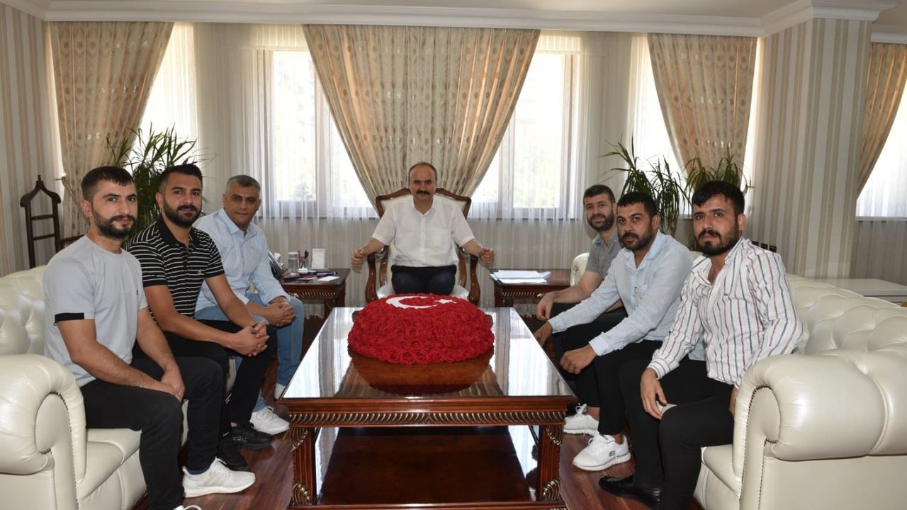 Meydan Mahallesi’nde bulunan Hasankeyf Şemsiyeli Sokağı Dernek Başkanı Hüsamettin Taşkıran, Sokak esnafı ve Meydan Mahallesi muhtarı, Vali Ekrem Canalp’ı makamında ziyaret etti.