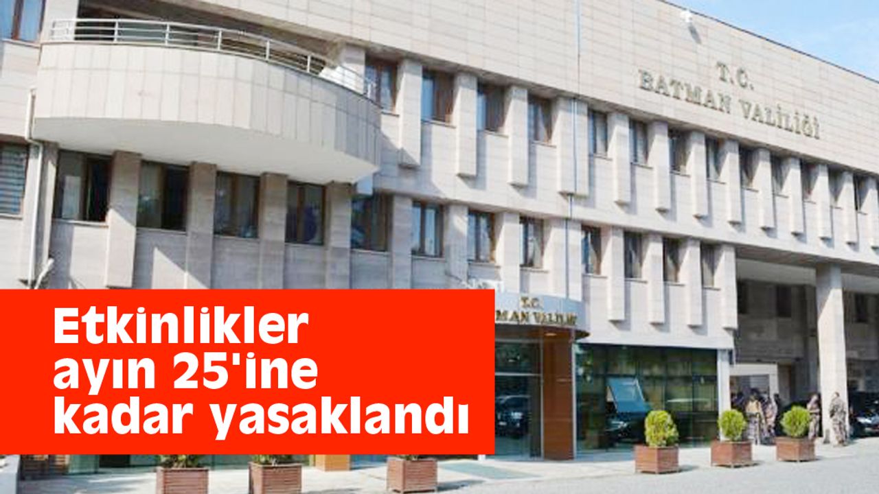 Batman Valiliği, kentte basın açıklaması, oturma eylemi, stant açma, anma töreni, gösteri yürüyüşleri gibi etkinlikleri bu ayın 25'ine kadar yasaklayarak izne bağladı.