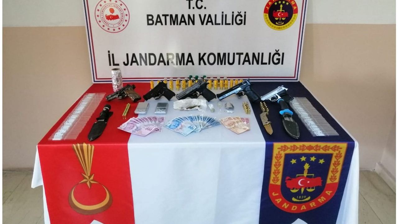 Operasyonla ilgili yapılan açıklamada, “(10) gr kubaresrar, (2) gr toz esrar, (5) adet ruhsatsıztabanca, (51) adet tabanca fişeği, (29) adet avtüfeği fişeği, (2) adet hassasterazi, (109) adet uyuşturucu kullanma aparatı, (3) adet Kesicive Delici alet ve suçtan elde edilmiş gelir olduğu