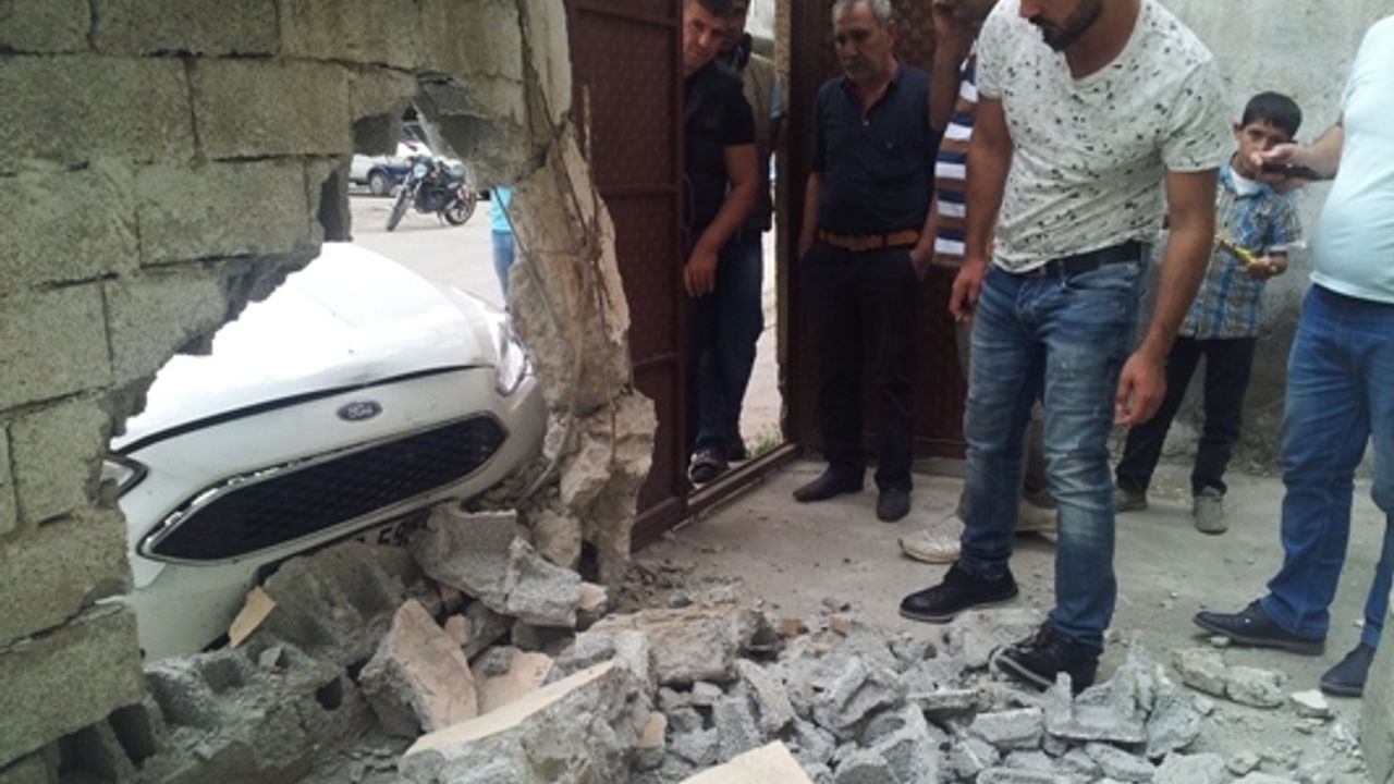 Çocuklara çarpmamak için aracının direksiyonunu kıran sürücü bir evin duvarını yıkarak ancak durabildi.