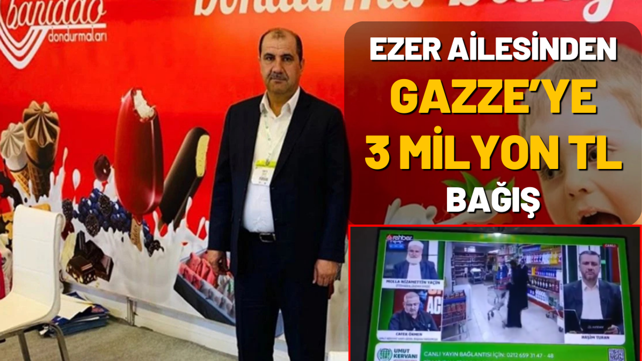 Umut Kervanı Derneği’nin organize ettiği yardım programına canlı telefon bağlantısıyla katılan Baniddo Dondurmaları sahibi Yahya Ezer, ailesi adına 3 milyon TL bağışta bulundu.