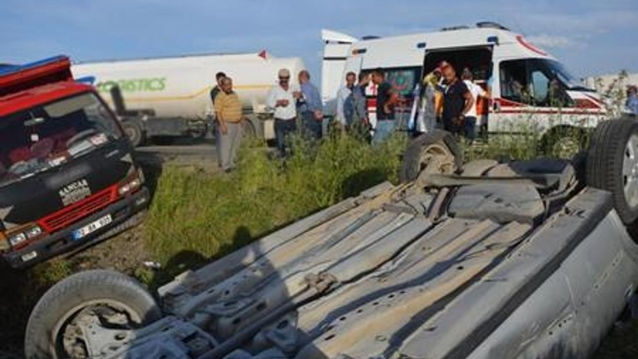 Çarpışma sonucu 45 L 9578 plakalı otomobil, yoldan çıkarak takla attı. Kazada, otomobilde bulunan aynı aileden 3'ü çocuk 5 kişi yaralandı.