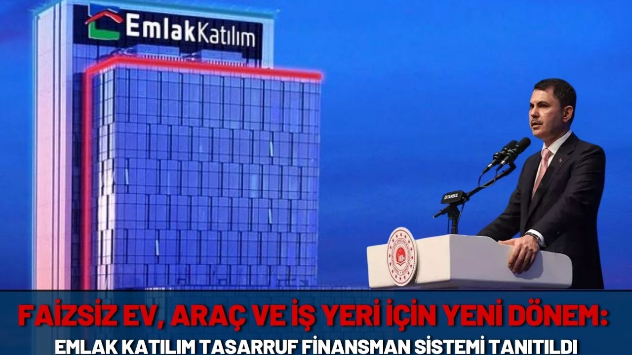 Çevre, Şehircilik ve İklim Değişikliği Bakanı Murat Kurum, İstanbul’da gerçekleştirilen “Emlak Katılım Tasarruf Finansman Sistemi Lansman Programı”nda, tasarruf finansman alanında kamu eliyle başlatılan yeni modeli tanıttı. Emlak Katılım Bankası’nın iştiraki olarak kurulan Emlak Katılım Tasarruf Finansman A.Ş., vatandaşlara ev, iş yeri ve araç sahibi olmayı faizsiz ve devlet güvenceli bir yapıyla sunmayı amaçlıyor.