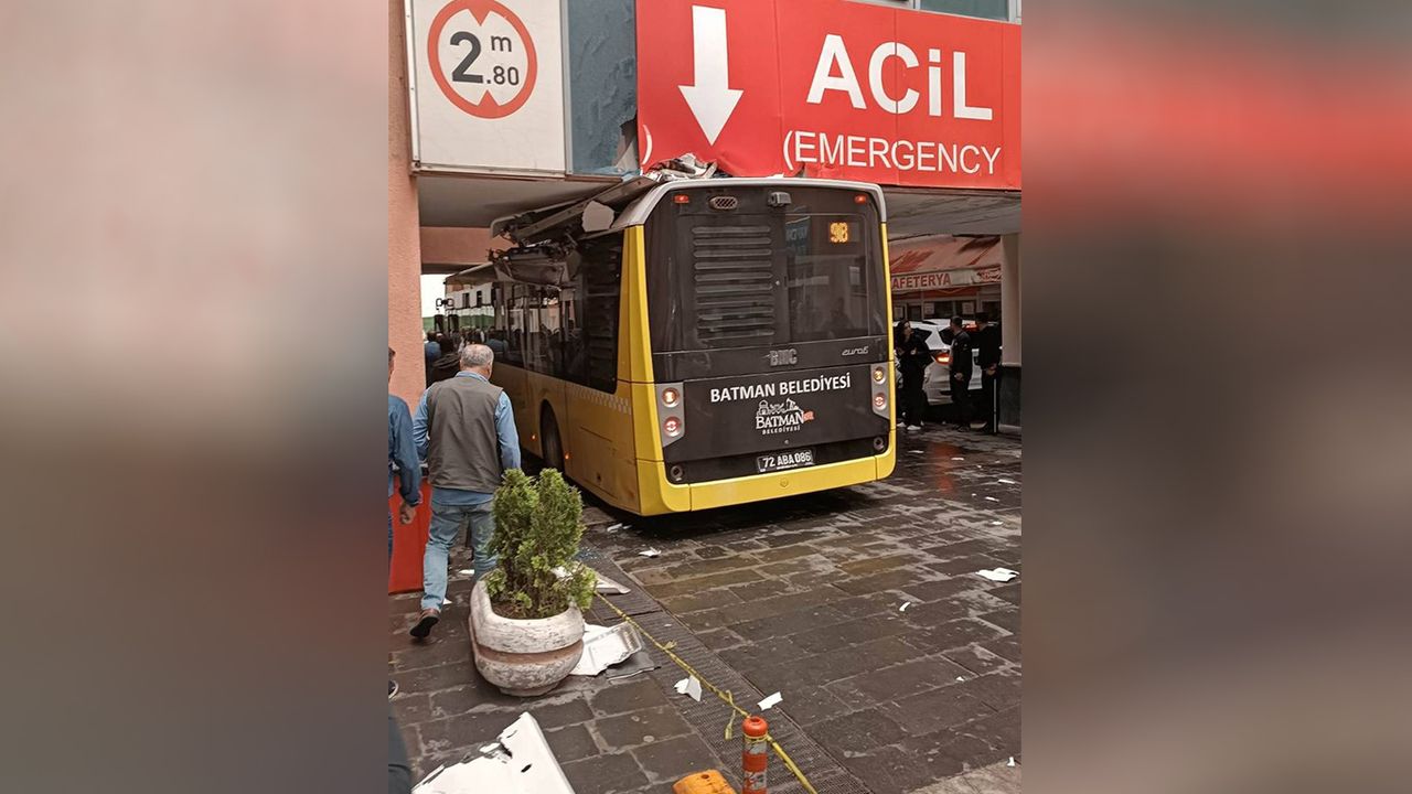 sürücünün kullandığı belediye otobüsü, hastane girişindeki tünele çarparak