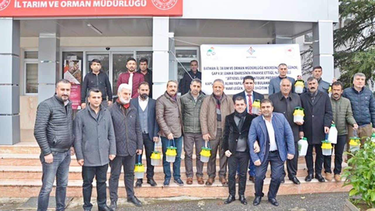 2.500 adet feromon tuzak, 1.000 litre bordo bulamacı ve 300 adet mavi leğen dağıtımı