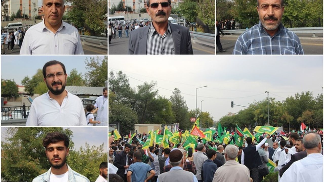 Diyarbakır İstasyon Meydanı'nda düzenlenen ve on binlerce insanın katıldığı "AksaTufanı'na Destek Mitinginde sık sık "kahrolsun israil" sloganları atıldı.