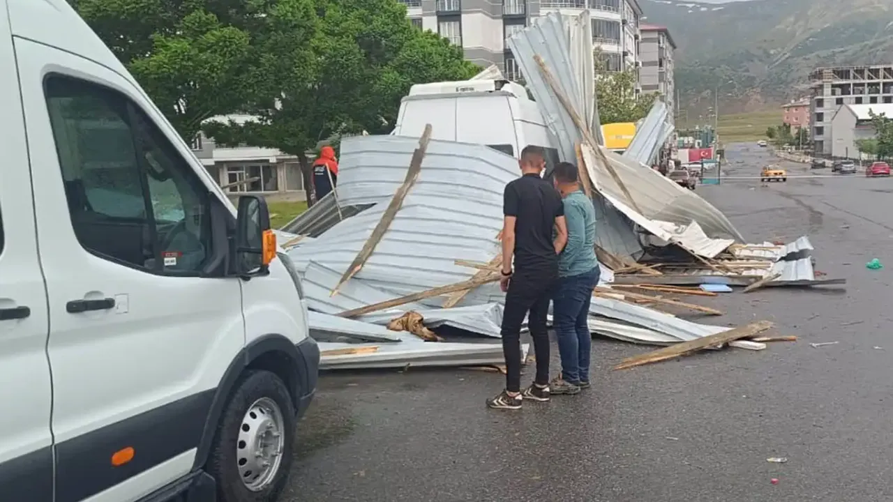 Bitlis'te kısa süreli etkili olan şiddetli rüzgar, kent merkezinde büyük hasara neden oldu. Beşminare Mahallesi'nde meydana gelen olayda, şiddetli rüzgarların uçurduğu çatılar araçların üzerine düştü ve maddi zarara yol açtı.