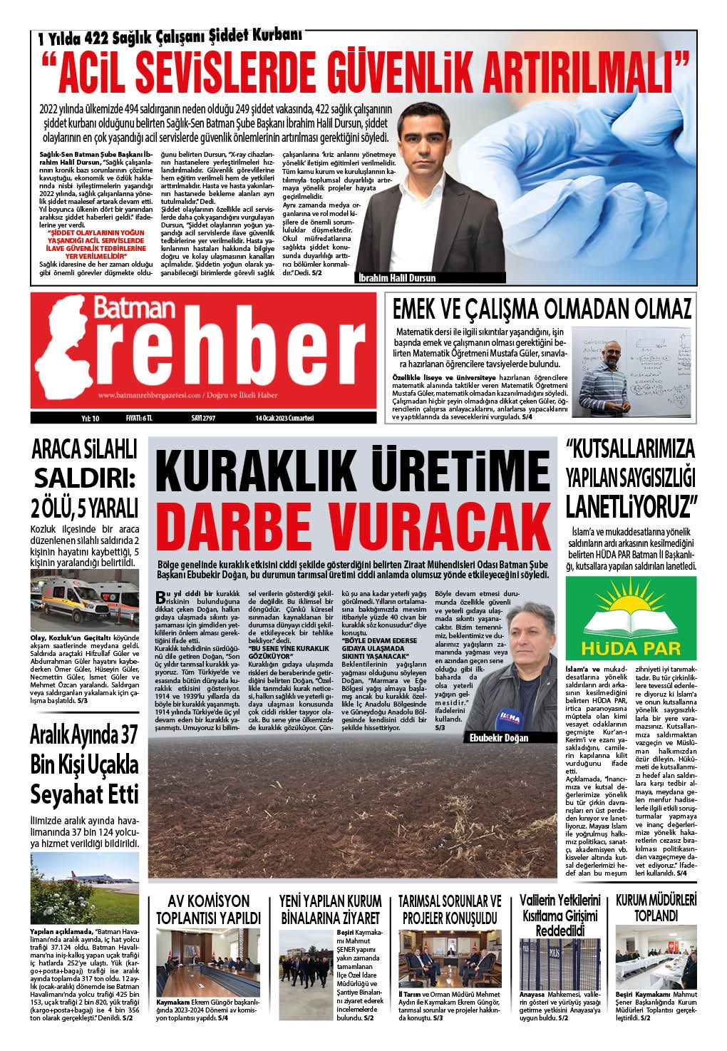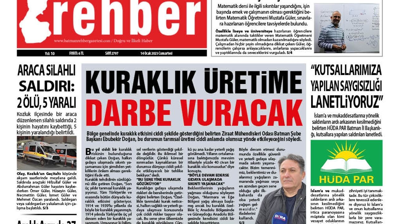 14.01.2023 Tarihli Manşetimiz